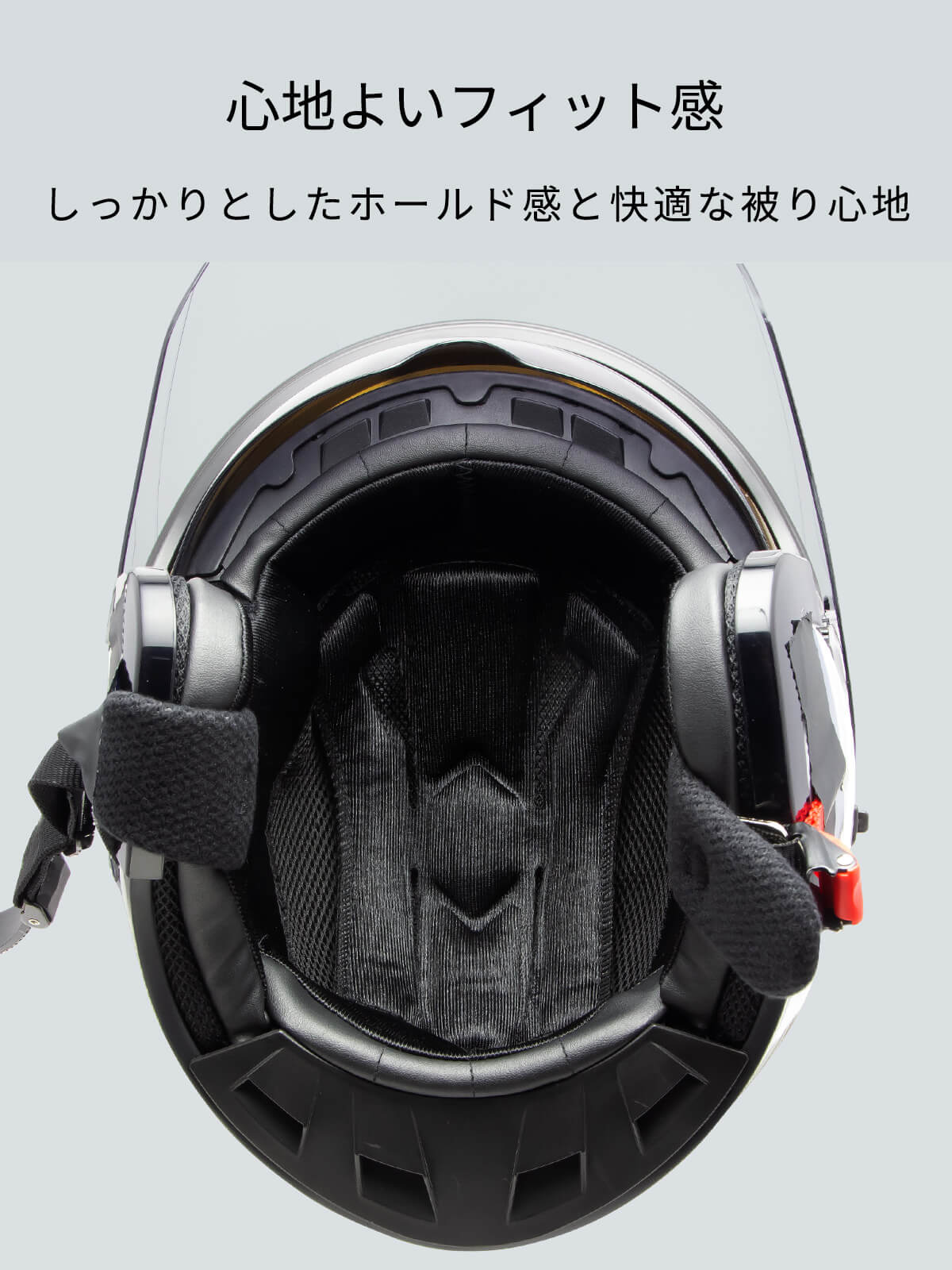 もちろんSG規格適合。コストパフォーマンスに優れるジェットヘルメットです。