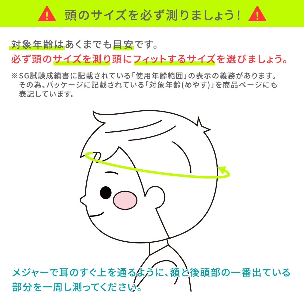 製品の対象年齢はだいたいの目安です。頭のサイズにあったサイズを選びましょう。
